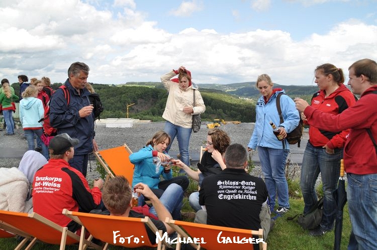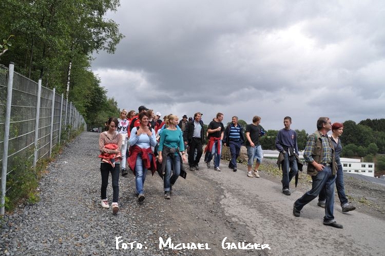 Nach der „Grengel“-Durchquerung und dem kreuzen der Leppestr. huschte der ein oder andere noch schnell an die Tanke, vermutlich um Vitaminsaft oder ähnliches zu holen. Im direkten Anschluß folgte nämlich der kraftzehrende  Aufstieg auf den Rommersberg mit etwa 300 Höhenmetern (ohne sauerstoffgerät). Zum Glück befand sich dort oben aber eine Verpflegungsstation wo man Rast machte. Dann noch eine kurze Etappe, vorbei an der kleinen Kapelle in Remshagen zum eigentlichen Ziel, dem Entsorgungszentrum Leppe. Hier erwartete uns Frau Monika Lichtinghagen–Wirths, die das Projekt :metabolon und die weiteren Vorhaben dort oben allen anschaulich vorstellte.