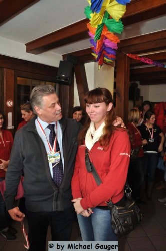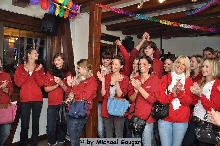 So fand auch Rudi Krautilik ein paar schöne Worte um das Tanzkorps als „Aushängeschild“ der KG und das Engagement der einzelnen Mitglieder deutlich zu loben. Er freute sich das jetzt aus eben diesen Reihen „etwas zurückkommt“, was leider in vergangener Zeit nicht immer der Fall war. Das Überreichen der Orden gab er an Armin und Silvia Gries weiter, nachdem er ihr persönlich gedankt hatte. Armin übernahm die Wortführung und hatte zu jedem Einzelnen des Korps ein paar schöne Worte, aber auch Dankesworte, zu sagen. Während er sich die Damen-Fraktion vornahm war es die Aufgaben von Silvia den Herren die Orden zu überreichen. Zum guten Schluß kamen noch Barbara und der Kommandant der Truppe, Daniel, an die Reihe.