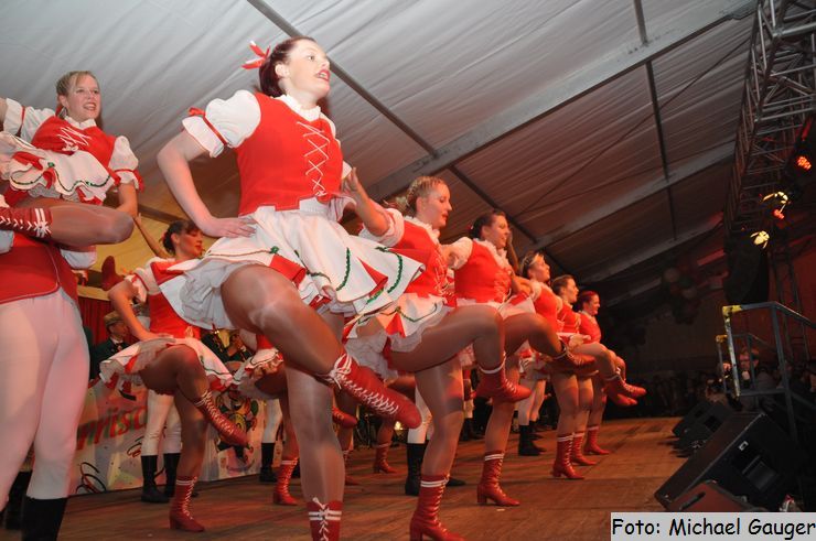 men, die Scheinwerfer im Gesicht und weg war das Lampenfieber. Das Dreigestirn vom letzten Jahr feuerte unsere Truppe begeistert vor der Bühne an und auch das Prinzenpaar mit Schmölzchen hatte sich, genau wie der Elferrat, von seinen Plätzen erhoben. Daniel begrüßte die Männer im Saal auf seine gewohnt lockere Art und ließ das Korps direkt zum ersten Tanz Aufstellung nehmen. Soviel Fotografen wie noch nie waren vor der Bühne postiert, ein wahres Blitzlichtgewitter ging los als die ersten Takte erklangen und die Tanzoffiziere die Mädels in der zweiten Reihe anhoben…