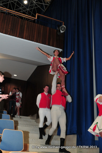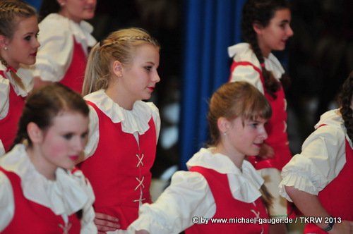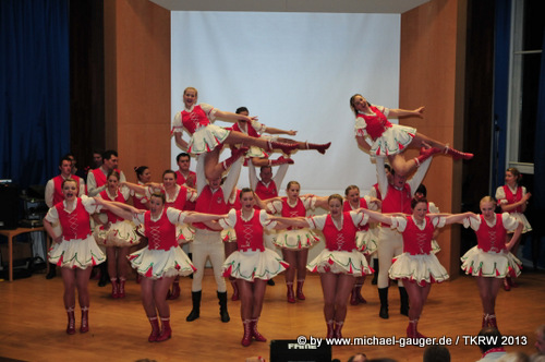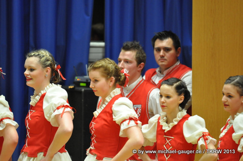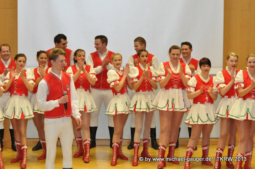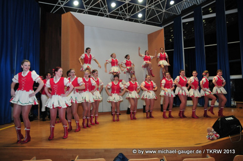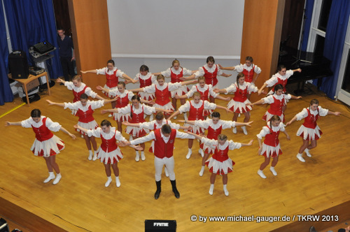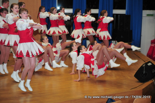 Bis auf ein paar kleine Patzer funktionierte aber beim „ersten Auftritt“ trotzdem alles gut und auch den Großen war nun der Applaus des gutgelaunten Publikums sicher. Alle Tänze wurden zur Probe gezeigt und zustimmendes Nicken und Applaudieren der Zuschauer bedeutet nur Gutes. Das Dreigestirn zeigte sich kurz vor ihrer Wagenübergabe und der darauffolgenden Proklamation ebenfalls gerne und freute sich schon jetzt auf gemeinsame Auftritte mit beiden Gruppen. Als kleines Dankeschön erhielten die Mädels eine Rose und die Jungs eine „Erfrischung“. Unserer Leiterin Silvia, der Betreuung durch Barbara, dem Trainer Oly und den Helfern Oliver und Michael wurde ebenfalls ein Dank ausgesprochen. Mit ein paar kräftigen „Alaafs“ und „Kall du´s“ wurde der Abend für die jecken Familienangehörigen beendet, während wir uns zu einer Trainingseinheit zurückzogen.