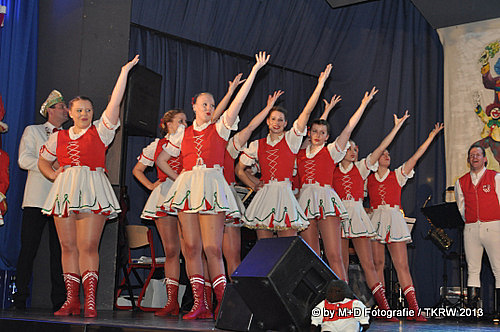 Gestartet wurde unser Programm mit der „Rosalie“ bevor „Commander“ Daniel einen Schwenk in die Karibik ankündigte, meinte der „Rüschel“ würde ab jetzt mit Rum getrunken und so unseren neuen Sessionstanz „Piraten“ ankündigte. Die Mädels strahlten um die Wette und bereits das Anfangsbühnenbild sah toll aus. Alle eingebauten Elemente konnten durchgeführt werden. Das direkte Echo in Richtung Bühne vom Publikum war groß. So hatten die Engelskirchener ihr Tanzkorps Rot-Weiss in 68 Jahren Bestehen noch nicht auf der Bühne erlebt. Dieser Meinung war auch Senatspräsident Peter Miebach in seinen Worten.