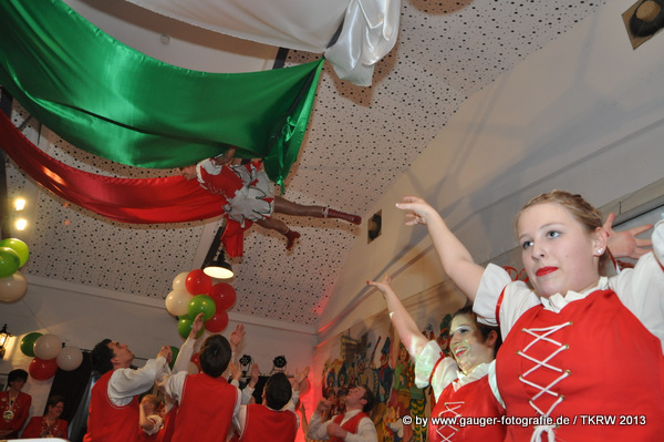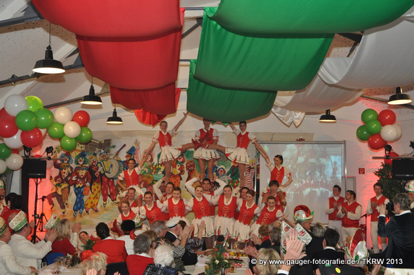 Ein volles Engelskirchener Sängerheim empfing uns beim Auftritt, der direkt nach unserem Dreigestirn, Prinz Udo II., Bauer Andreas und Jungfrau Huberta, stattfand. Etwa 160 Gäste, darunter viele Ehrengäste, hatten sich zur Jubiläumsfeier an diesem Abend hier versammelt. Eine lockere Geburtstagsfeier, da dürfen eigene Kräfte aus dem Verein natürlich nicht fehlen.