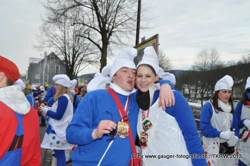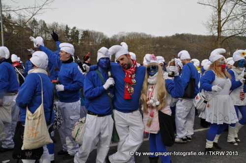Viel Spaß und gute Laune auch während des gesamten Zuges. Viele Jecken hatten sich am Zugweg eingefunden und wurden natürlich bestens bedient. Vor allem die Kleinsten hatten es unseren Schlumpfinen angetan, immer wieder wurden diese regelrecht überfallen und mit Süßem überhäuft. Hinterläßt hoffentlich kein blau-weißes Trauma bei den Kleinen ;-)