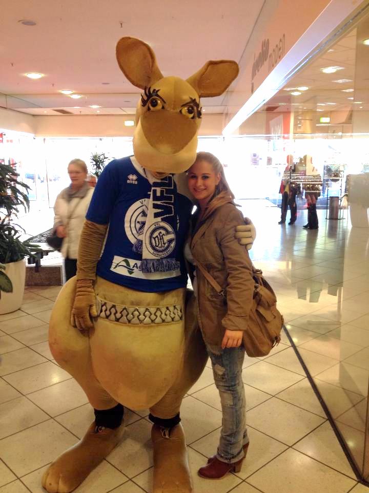 Ziemlich bekannt kamen „Gummi“, dem Maskottchen des VFL Gummersbach, diese beide Damen schon vor. Bei der offiziellen Autogrammstunde des Handball-Bundesligavereins im Gummersbacher Einkaufszentrum tat das Känguru seelenruhig seinen Dienst, als er spontan um ein gemeinsames Foto von seinen weiblichen Fans Püppi (links) und Anna, zwei unserer Paar-Mariechen, gebeten wurde. Diese nutzten den Sonntag zum Shopping in der Kreisstadt und konnten „Gummi“ einfach nicht widerstehen.