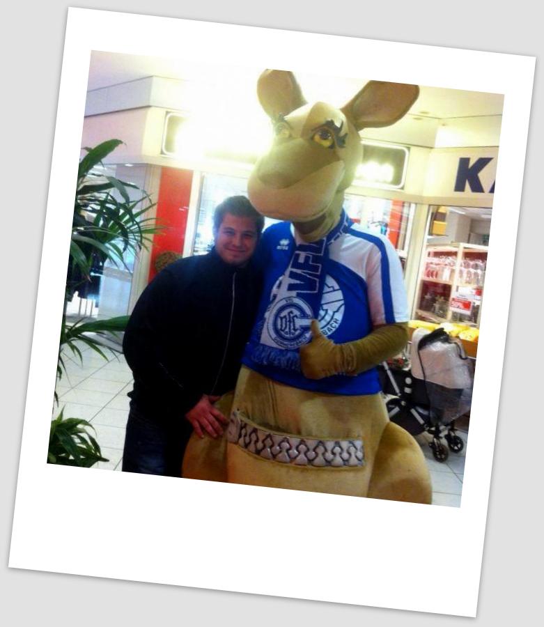 Tanzoffizier Adrian wollte unbedingt auch mit dem Star der Schwalbe arena auf ein Foto…Neben dem RIESEN-Känguru wirkt er nur ein wenig…aber lassen wir das ;-)