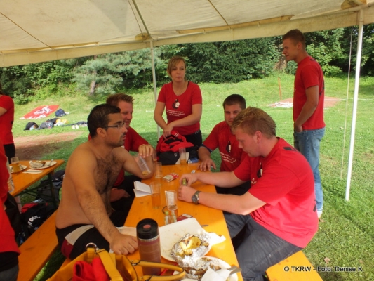 Zahlreiche Karnevalsgesellschaften und Tanzgruppen (siehe Ergebnisse unten) nahmen „Just for Fun“ daran teil. Morgens war noch ein dicker Schauer über das Veranstaltungsgelände hergezogen, doch mit Turnierbeginn war alles super. Im Modus „Jeder gegen Jeden“ war für reichlich Spielbetrieb auf bis zu 4 Feldern gleichzeitig gesorgt. Wir für unseren Teil hatten reichlich Spaß, war doch eine große Anzahl an aktiven und inaktiven TKRW-Mitgliedern mitgefahren. Wer nicht spielte, verdingte sich als Schreiber bei anderen Paarungen oder verfolgte das Ganze als Zaungast und feuerte kräftig an. Auch Coach Oly fand den Weg zum Event, war aber ein wenig froh nicht zum Einsatz zu kommen.