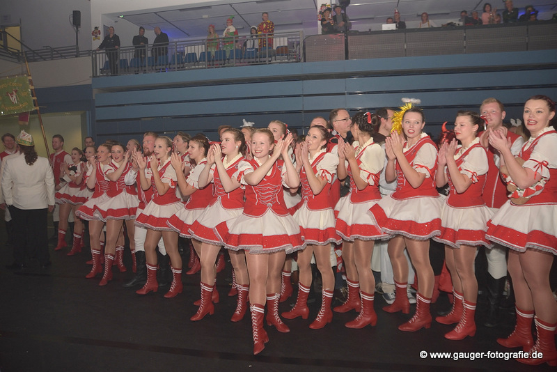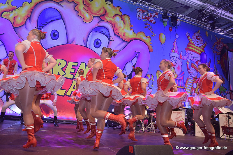 Kaum in Gummersbach angekommen ging es in die Kabinen zum umziehen, Stiefel schnüren und aufwärmen. Währenddessen wurden die meisten von uns immer nervöser, vor allem bei einem kurzen Blick in die Halle, wo die ganzen Jecken schon warteten. Für Katharina M., für die es als eine von unseren “Neuen”, ihr erster richtiger Auftritt in der Session bei uns war, und dann direkt vor so vielen Leuten !Ihre Nervosität war ihr kaum anzumerken, da ihre Vorfreude, endlich das auf der Bühne zu zeigen wofür sie seit Wochen trainiert hat, deutlich überwog !