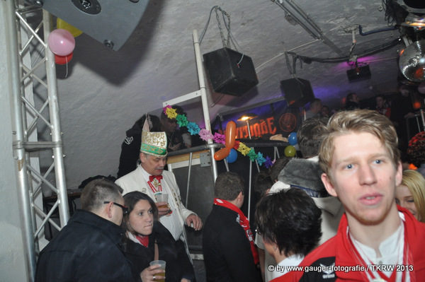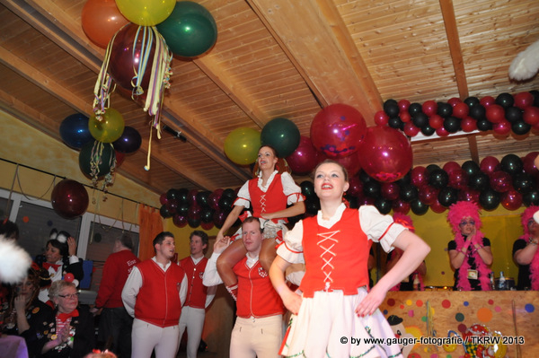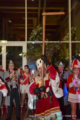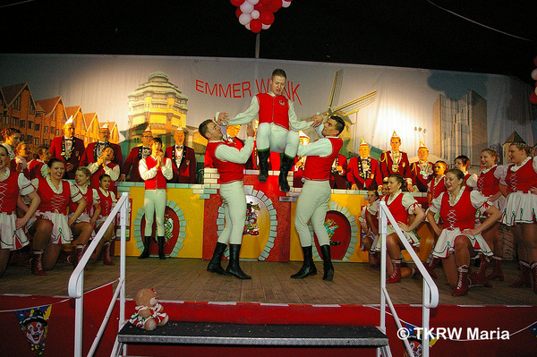 Hier war unser Einmarsch dann genau das Gegenteil, nämlich beträchtlich länger als sonst. Da das Zelt aber in „unseren“ Farben, also rot-weiß, geschmückt war glich das Ganze dann doch wieder einem Triumphzug durch ein tolles Publikum. Allerdings agierten wir an diesem Abend als eine Art „Stiftung Bühnen-Test“, denn leider war nach unserem Auftritt die Bühne etwas ramponiert. Kommandant Daniel hatte während unseres Auftritts bereits nach dem ersten Tanz erhebliche Mühe wieder zu Wort zu kommen, denn das jecke Publikum hörte überhaupt nicht mit den „Fan-Gesängen“, wie z.B. „Oh, wie ist das schööööön !“, auf.