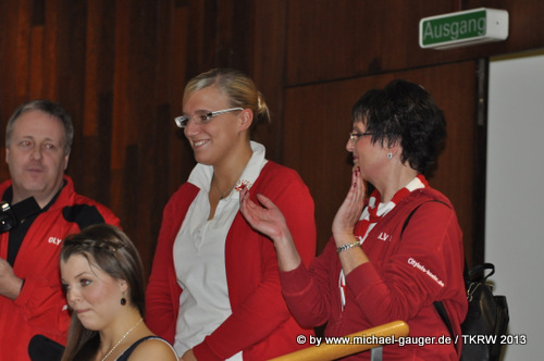 Beim zweiten Takt vom ersten Tanz, dem „Baumarkt“, klatschte bereits der ganze Saal und die „Schlossgarde-Pänz“ hatten sich auf der Galerie im ersten Stock und vor der Bühne angesiedelt um mit ihren Papiertröten kräftig mitzumachen. Nach unserer „Rosalie“, dem zweiten Tanz, setzten sich die Gäste dann doch mal kurz hin. Zum einen um kurz durchzuschnaufen, zum anderen um einer besonderen Zeremonie zu lauschen.