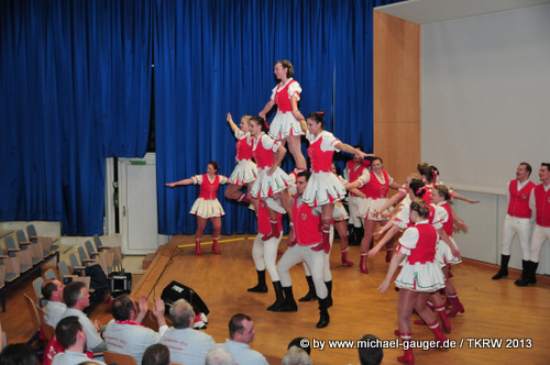 Da unser Kommandant Daniel an diesem Abend verhindert war übernahm der Kommandant der Schlossgarde, Uwe „Vize“ Lamers, diesen verantwortungsvollen Part für unseren Auftritt. Eine tolle Stimmung herrschte im Publikum als wir in den Saal einmarschierten, hatte doch Blau-Weiß Vilkerath eine Stunde vorher auch schon seinen Auftritt absolviert und die Gäste ordentlich angeheizt. Aus privaten Gründen, einige hatte lange Zeit im Vorfeld dieses Wochenende bereits verplant oder weilen zur Zeit im Feldlazarett, hatten wir nur 3 Tanzpaare am Start. Dies kündigte Bühnenkommandant Marco „Hüppemutz“ Tessitori auch so an, trotzdem gaben natürlich alle ihr Bestes. Vor allem unsere Reihenmädels strahlten um die Wette und machten ordentlich Stimmung. Da benötigten die anwesenden Fotografen absolut kein Blitzlicht mehr…