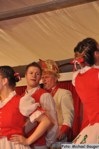 War der Einzug bei der Herrensitzung schon super, so toppten die Damen das Ganze. Zeremonienmeister Kevin Helfer führte uns wieder perfekt durch die Reihen auf die Bühne. Oben angekommen und stürmisch begrüßt war Kommandant Daniel sofort wieder in seinem Element. Er freute sich das die Damen doch eine kleine Ecke aufmerksamer seien als die Herren von letztem Samstag, müßte doch bei ihnen keiner so energisch aufs Fässchen auf dem Tisch aufpassen..