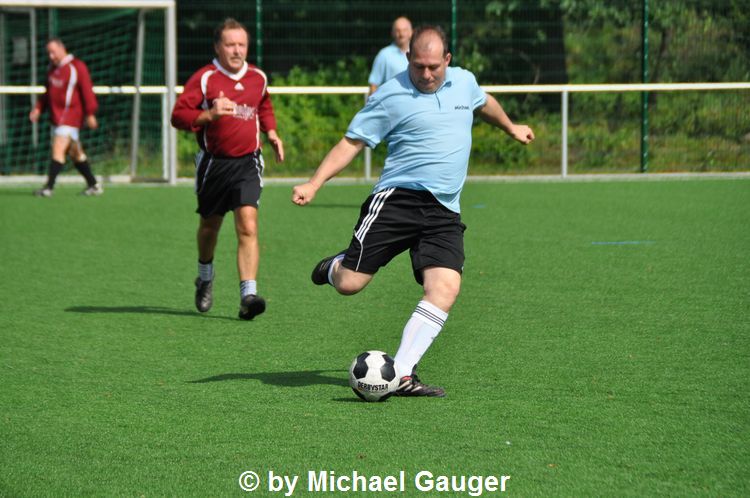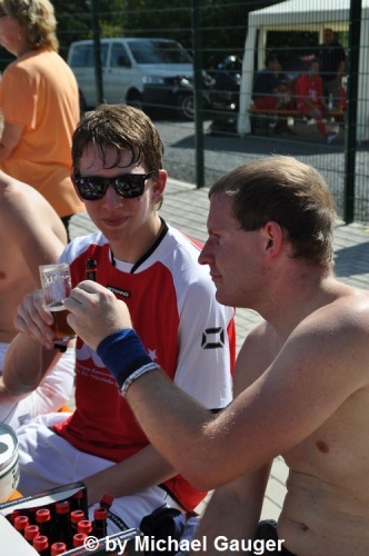 Die Kunstrasenanlage erbebte förmlich als unser Basti seine Beschallung aufgebaut hatte und den Soundcheck durchführte. Mit reichlich ♪ ♫ Musikuntermalung ♫ ♪ versehen starteten die Spiele die von 3 verschiedenen Schiedsrichtern geleitet wurden. Jeweils 5 Spieler und ein Torwart kämpften um Ehre und Ruhm, bzw. die Pokale. Es wurde immer im Wechsel gespielt: Mal die Großen – dann die Jugend. Ein zusätzlicher „Schluckspecht“-Pokal wartete auf die Seniorenmannschaft mit dem höchsten Getränkekonsum. Geboten wurde einiges an diesem Tag: neben einer großen Kuchentheke, leckeren Sachen vom Grill und kühlen Getränken wurden die Kleinen (und später auch Größere) nicht vergessen. Stand doch eine Hüpfburg bereit…