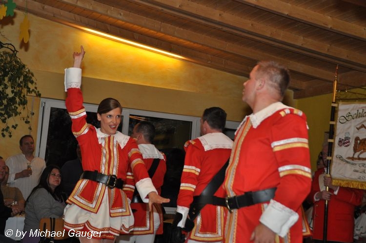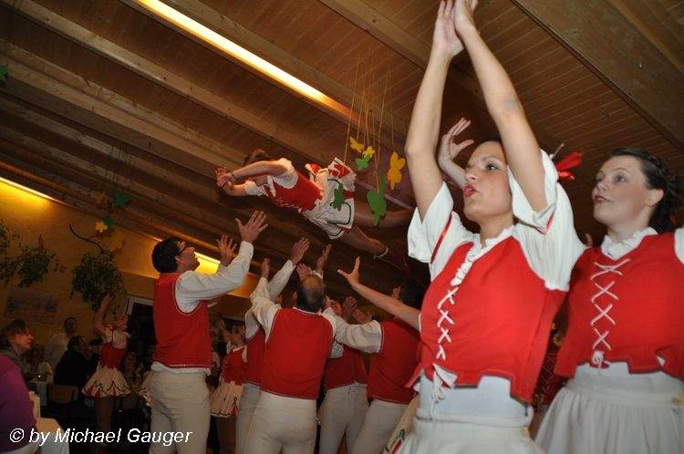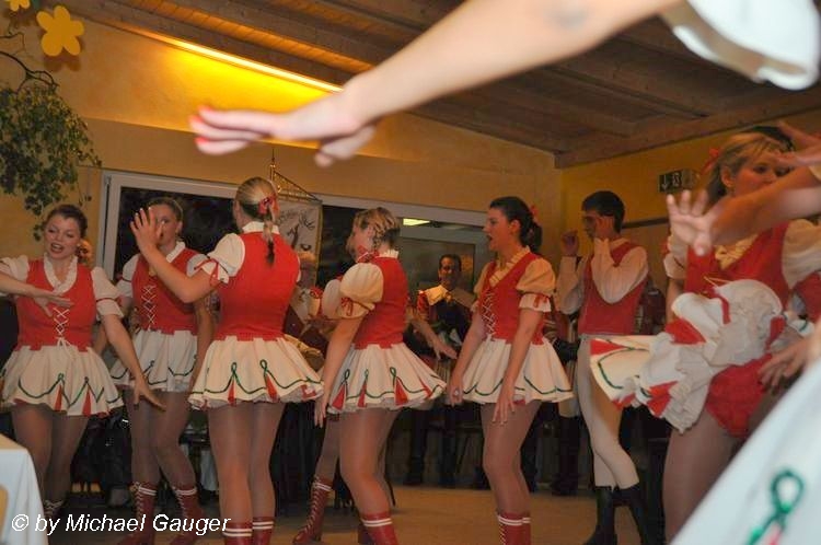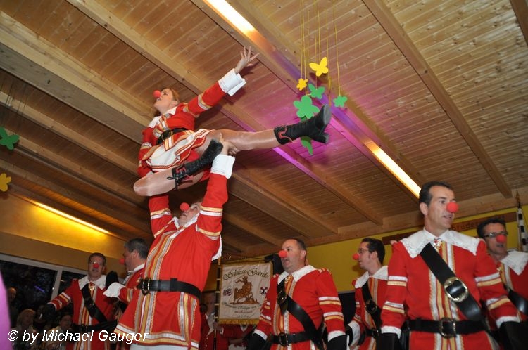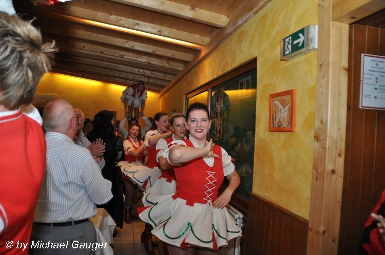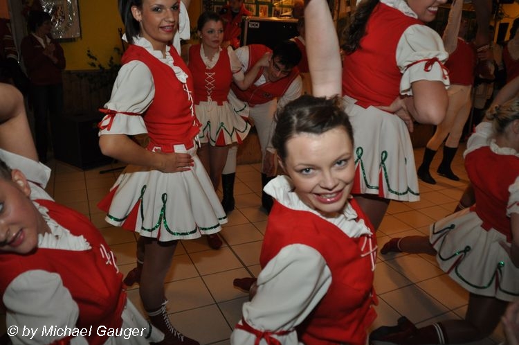 Kleiner Unfall nebenbei: Mariechen Jojo, die an diesem Abend für Püppi eingesprungen war, testete die Festigkeit der Deckenkonstruktion beim ersten Wurf. Ergebnis: Holz ist härter als Kopf…oder besser gesagt 1 : 0 für Holz