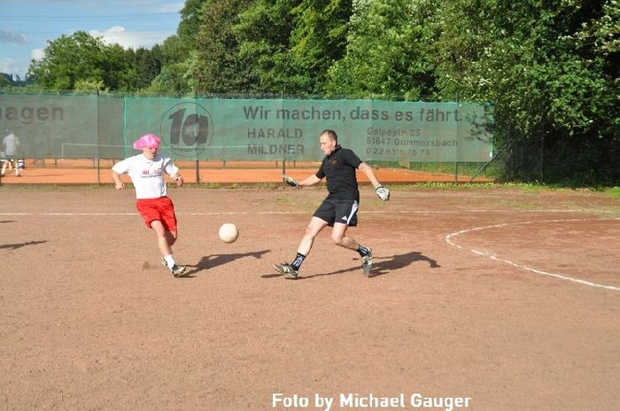 Spaß und Geselligkeit stehen in unserer Truppe hoch im Kurs. So wurde nicht lange überlegt und bei diesem besonderen Turnier am 8. Juli mitgemacht. Und wer von uns nicht selber auf dem Platz stand der wurde kräftig von den anderen angefeuert (da kam auch nochmal die „Vuvuzela“ zum Einsatz).