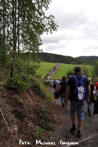 Zugegeben, ein paar Freudentränen waren auch dabei. Ganz ohne Schauer kamen die Wanderer bei der diesjährigen Tour mit der KG Närrische Oberberger nicht davon. Kurz nach elf Uhr war Aufbruch am Engelskirchener Bahnhof mit Kind, Kegel,Hund, ehemaligen Dreigestirnen und dem neuen Prinzenpaar. Bestens ausgestattet mit Marschverpflegung und Musik im Rucksack hängte sich das Tanzkorps also hintendran.