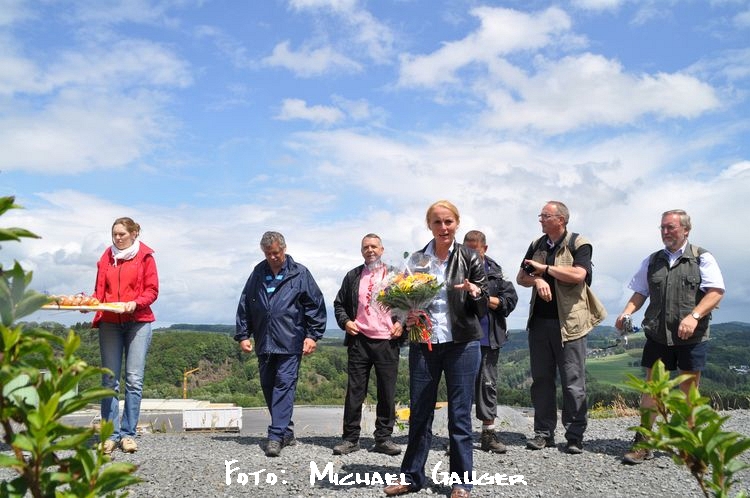 In kleinere Gruppen aufgeteilt und mit einem kundigen Mitarbeiter bestückt lag das absolute Ziel dann nicht mehr fern. Unterhalb des großen Deponiekegels war Endstation. Brötchen und Getränke wurden gereicht und der ein oder andere erklomm dann auch den Gipfel, von wo aus eine tolle Aussicht aufs Umland möglich war.