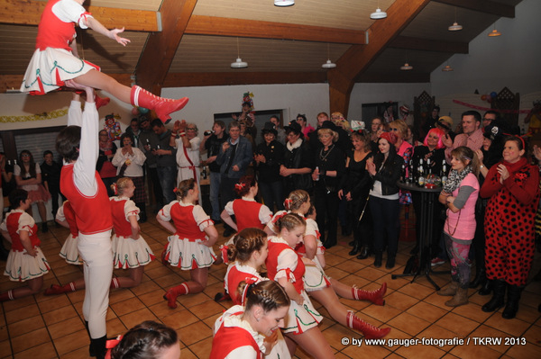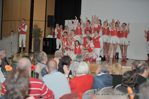 Die Familiensitzung in der Aggertalklinik Engelskirchen war der Abschluß eines schönen, aber auch sehr anstrengenden Wochenendes. Ein abwechslungsreiches Programm hatte man hier zusammengestellt, bei dem natürlich die vereinseigenen Gruppierungen nicht fehlten. Nachdem die Minis und die Kleinen bereits ihre Auftritte hatten, und auch die Schlossgarde bereits ihre Aufwartung gemacht hatte, waren wir nach einem Rednerduo dran. Daniel meinte er ließe heute lieber mehr tanzen, als das er reden würde. Nach dem Opener, der „Rosalie“, lief es dank einem speziellen „Präsidenten-Rednerstimme-Erholungsbonbon (Normalsterbliche sagen „Husten-Klump“ dazu..) dann besser, denn auch hier gab es noch Jecke die unseren „Piraten“ noch nicht kannten und mit einer Reizüberflutung zu kämpfen hatten. Denn bei diesem Tanz passiert so viel gleichzeitig, den muss man mehrmals sehen um alles mitzubekommen. Mit dem Baumarkt als Zugabe verabschiedeten wir uns von der Bühne, nicht ohne jedoch unsere ehemalige Mitstreiterin Claudia herzlich zu grüßen, die uns mit ihrer Anwesenheit beglückte. Zur Überraschung aller zauberte „Onkel“ Paul Remmel zum Abschluß drei morgens frischgepflückte ( so seine Aussage) Blumensträuße aus dem Hut und überreichte diese Silvia und den beiden Co-Trainerinnen Ann-Kathrin und Ina, bevor er auch die Paare noch schnell vorstellte und Coach Oly grüßte. Im Gegenzug bedankten wir uns mit der Verleihung unserer „Ehren-TKRW-Spange“ bei den Verantwortlichen der Klinikleitung, die immer ein offenes Ohr für uns haben und die uns u.a. auch die Trainingsräumlichkeiten zur Verfügung stellen, was nicht selbstverständlich ist.