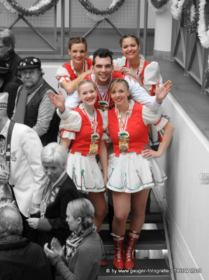 Die Herrensitzung in Brüggen war von der Stimmung her absolut Top. Standing Ovations und kräftig besungen wurde die ganze Truppe von den anwesenden Herren auch. Daniel krächzte dann doch noch was leicht Negatives wie etwa: „Ihr solltet lieber mal ein Kölsch trinken…“, was sich aber in einem absoluten „Pils-Land“ als nicht unbedingt günstig auswirkte. Er hatte sie jedoch schnell wieder besänftigt und somit auf seiner Seite. Ohne Zugaben ging es bei den Herren der Schöpfung nicht von der Bühne, so daß insgesamt 4 Tänze aufs Parkett gezaubert wurden. Danach ging es aber schleunigst Richtung Heimat…
