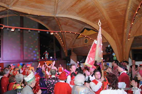 Dort herrschte eine Wahnsinnsstimmung und bereits beim Eintreffen, denn wir waren sehr zeitig dort, wurden wir unheimlich freundlich empfangen. Kommandant Daniel war diesmal supergut drauf, hatte direkt die Disco-Kugel im Auge und zeigte mit den Worten:“ Da war ja noch was…“, darauf. Außerdem erklärte er unseren Schlachtruf „wir rufen rut-wiess – und ihr Ole!“. Und das funktionierte supergut, auch durch den Sitzungspräsidenten beim späteren Ausmarsch.