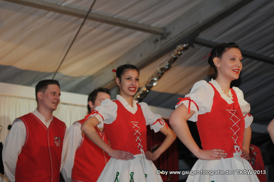 Hier war unser Einmarsch dann genau das Gegenteil, nämlich beträchtlich länger als sonst. Da das Zelt aber in „unseren“ Farben, also rot-weiß, geschmückt war glich das Ganze dann doch wieder einem Triumphzug durch ein tolles Publikum. Allerdings agierten wir an diesem Abend als eine Art „Stiftung Bühnen-Test“, denn leider war nach unserem Auftritt die Bühne etwas ramponiert. Kommandant Daniel hatte während unseres Auftritts bereits nach dem ersten Tanz erhebliche Mühe wieder zu Wort zu kommen, denn das jecke Publikum hörte überhaupt nicht mit den „Fan-Gesängen“, wie z.B. „Oh, wie ist das schööööön !“, auf.