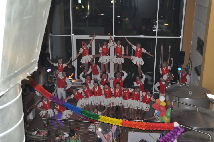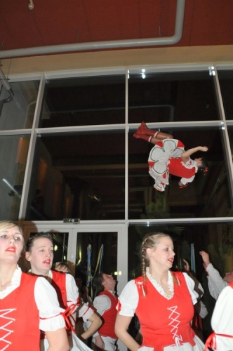 Mit einem „Gast“ an der Standarte marschierten wir also in den Saal und erfreuten das Publikum mit unseren Tänzen. Leider war das Timing des DJ´s (was die Einsätze und Länge der Musik angeht) nicht ganz so optimal, doch wir konnten erfolgreich improvisieren und diese Fehler wieder wettmachen…