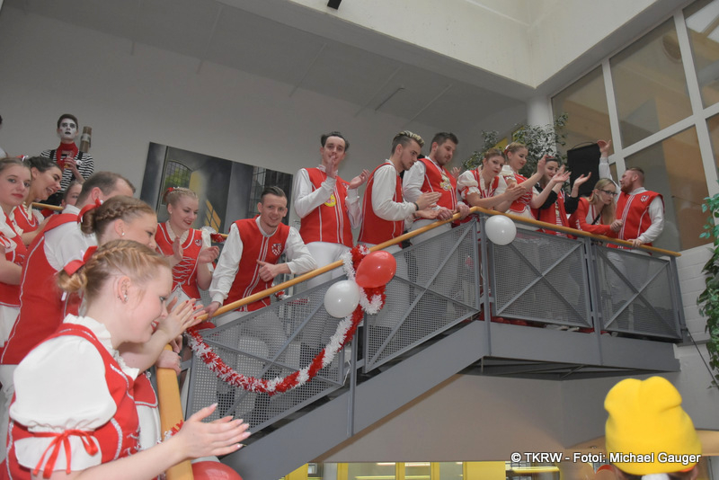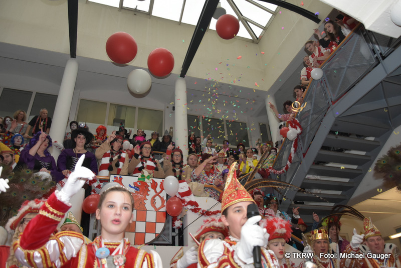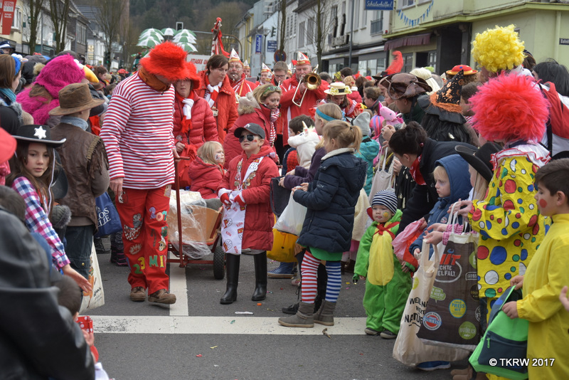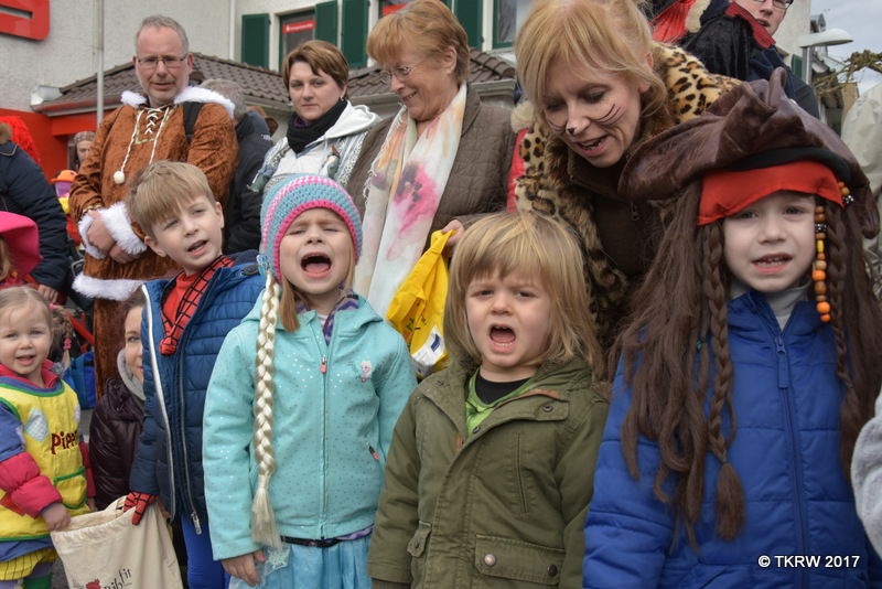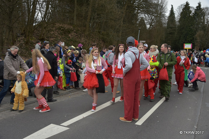 Karnevalssonntag nahm ein Teil von uns gemeinsam mit den Juks-Mitgliedern am Kinderzug der KG Närrische Oberberger teil. Die muntere Truppe machte sich wie jedes Jahr als rot-weiße Bauarbeiter auf den Weg um unseren kleinen Jecken links und rechts am Zugweg mit diversen Leckereien und anderen Sachen glücklich zu machen. Da benötigte man teilweise schon einen Gehörschutz, so laut riefen die kleinen Jecken, teilweise auf den Schultern der Eltern oder Großeltern sitzend, nach Kamelle. Auch die Jugendtanzgruppe und alle anderen Zugteilnehmern hatten einen Riesenspaß an diesem Tag. Mehrere Hundert Kamellesammler drängten sich im Dorf und für Prinz Oliver und Prinzessin Victoria war es ein toller Ausblick vom Kinderprinzenwagen.